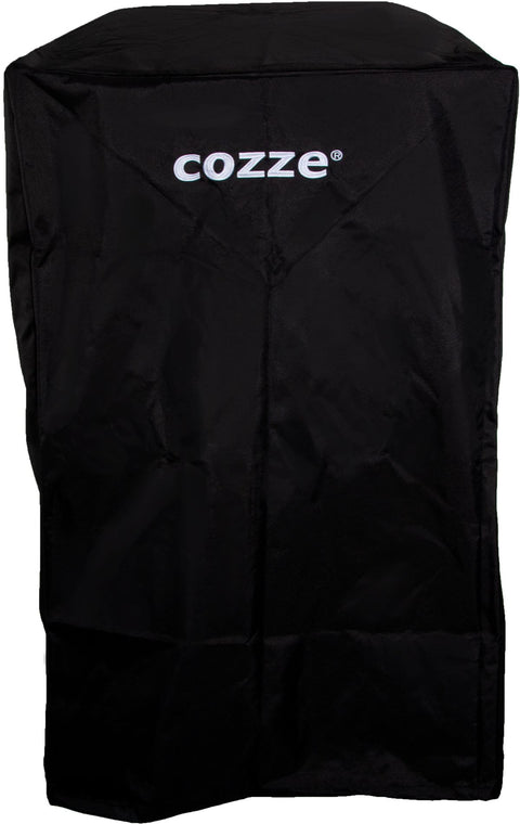 Der Cozze Überzug für 17 Zoll Pizzaofen, E300 und 500-Serie ist ein schwarzer rechteckiger, wetterfester Schutz mit "cozze" in weißer Schrift, der Ihren Pizzaofen im Freien zuverlässig schützt.